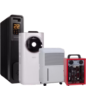 Für ein angenehmes Raumklima stehen unterschiedliche Geräte zur Verfügung, Klimaanlagen, Ventilatoren, Heizlüfter oder Luftentfeuchter bieten je nach Jahreszeit die passende Unterstützung, ob zum Kühlen, Heizen oder Entfeuchten.